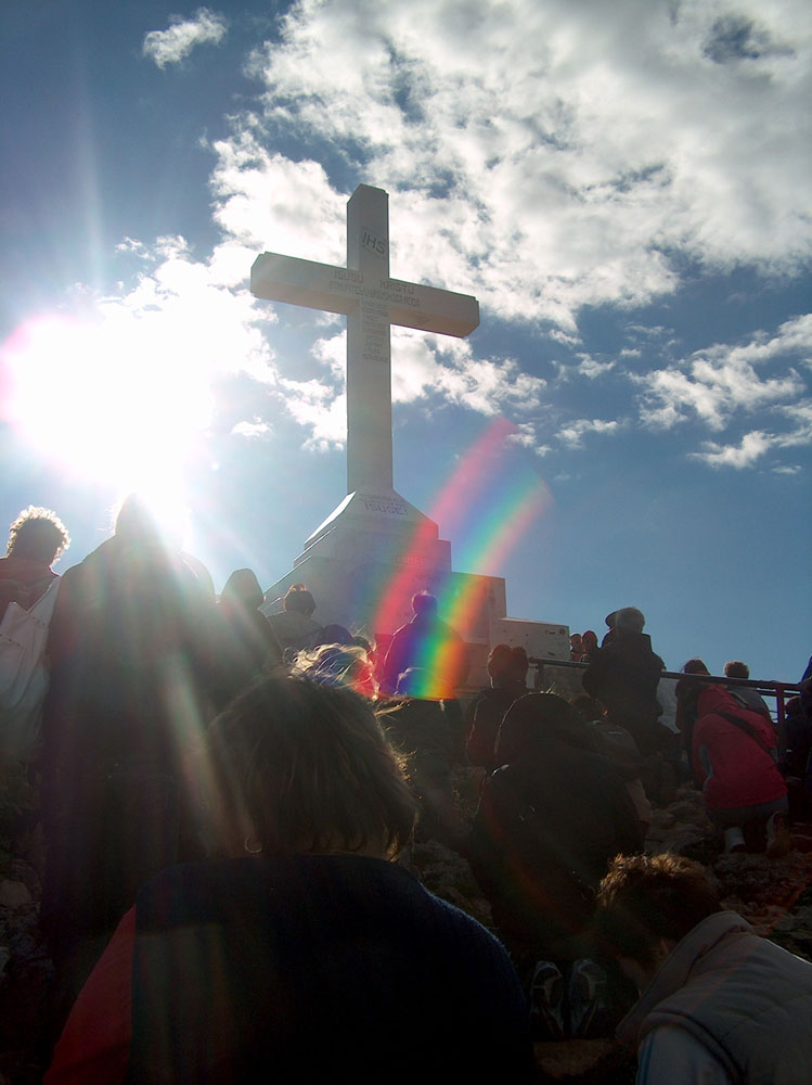 Arco íris de luz em cima do monte Krizevac