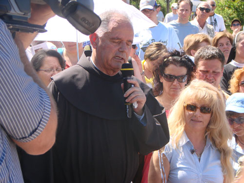 Padre Jozo reza o rosário subindo a colina das aparições