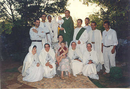 Fig 11- Pe.Gianni de casula verde(fundador da comunidade)Marija Paviloc com o seu filhinho ao centro ,alguns padres da C.M.OP e irmãos da comunidade em MEDJUGORJE.