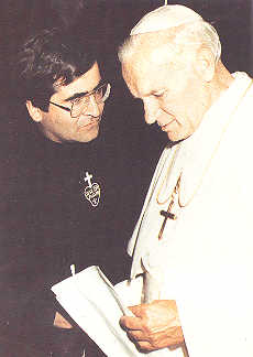 Fig 34-O fundador do oásis da paz,Pe.Gianni entregando as regras de vida da comunidade ao santo padre João Paulo II.