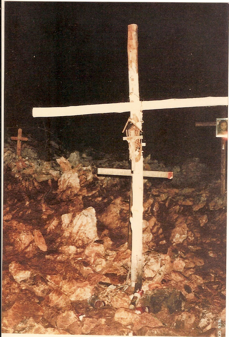 | foto tirada em 25/06/2000 no aniversário de 19 anos de aparições - foto de Alberto Bonifácio | Cruz do Krizevac escondida na luz do sol |