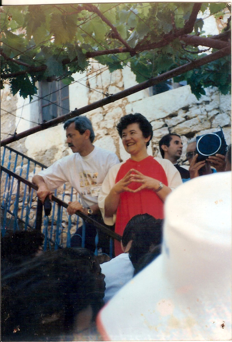 | 25/07/1997 Vicka falando aos peregrinos do Servos da Rainha em sua casa | |