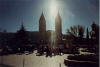 Luz do Céu em forma de Nossa Senhora no meio da praça da Igreja