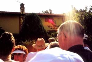 Luz do Céu sobre a cabeça de sacerdote em frente a casa de Vicka