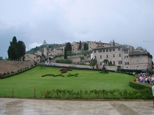 Jardins da basílica de São Francisco com o desenho do TAU PAX