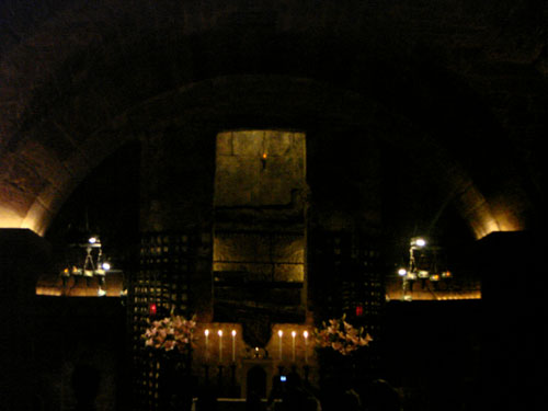 Túmulo de São Francisco (no alto) e de seus companheiros que iniciaram os franciscanos (ao lado)