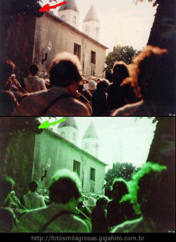 Foto tirada por peregrino italiano durante a elevação da hóstia na igreja de São Tiago (1989) |