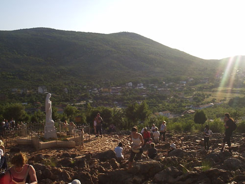 Imagem no local das primeiras aparições no monte Podbro (colina das aparições)
