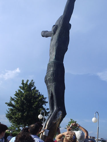 Estátua de Cristo em bronze que milagrosamente verte lágrimas do joelho direito sem parar