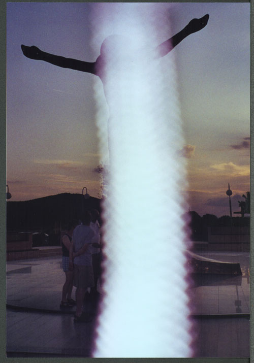 Coluna de luz em volta da estátua de Cristo em Medjugorje |