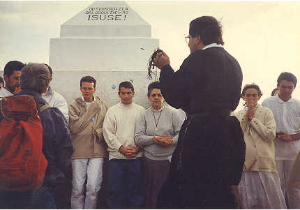 Fig 19-Na montanha da cruz em MEDJUGORJE...Pe.Gianni entrega a cruz da comunidade aos postulantes.