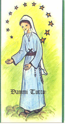 Nossa Senhora desenhada por uma irmã , vestindo o habito da comunidade e pronunciando a palavra(DÁ-ME TUDO!!!) que deu inicio a essa família eclesial de vida consagrada denominada COMUNIDADE MARIANA-"OÁSIS DA PAZ"