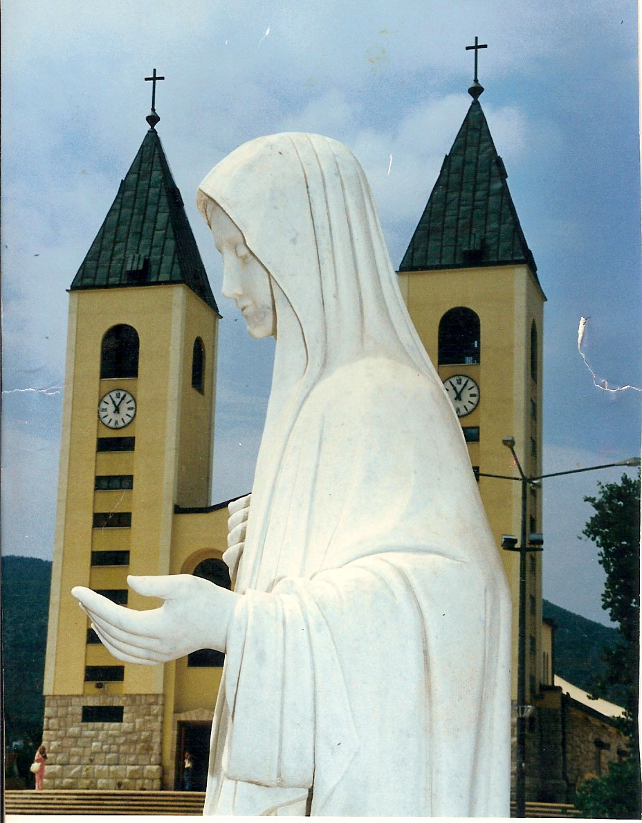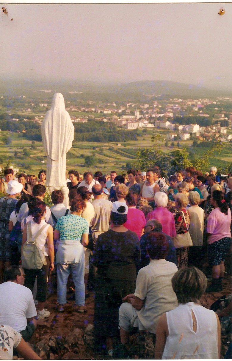 | foto tirada em 25/06/2000 no aniversário de 19 anos de aparições - foto de Alberto Bonifácio | Cruz do Krizevac escondida na luz do sol |