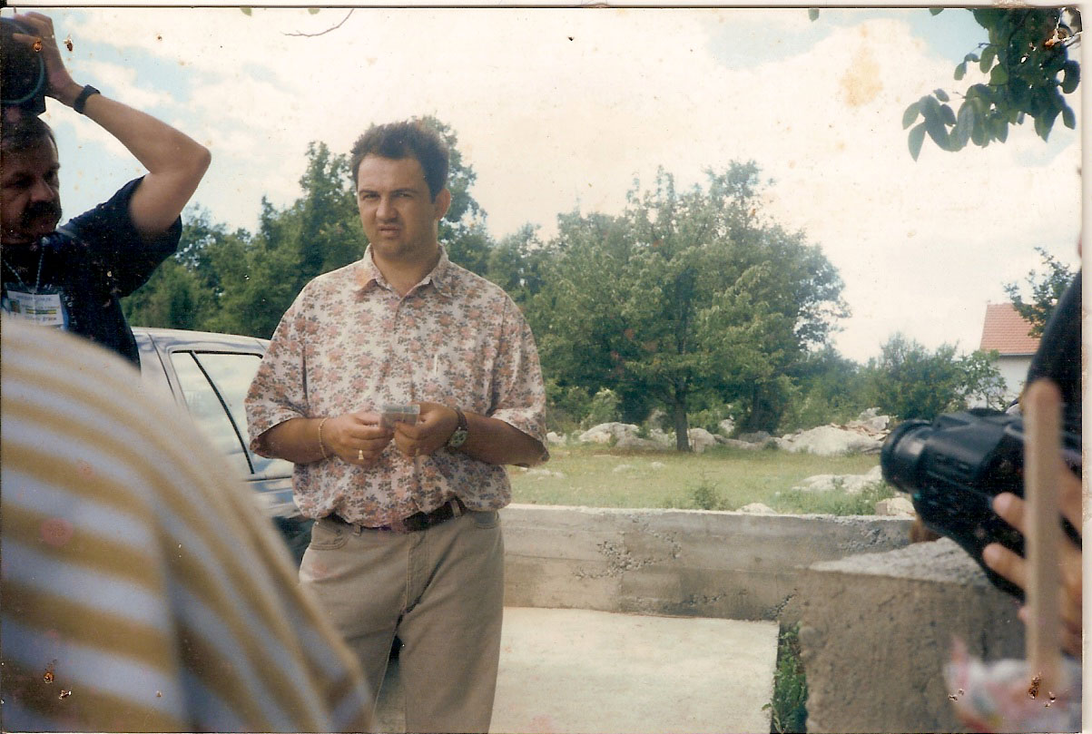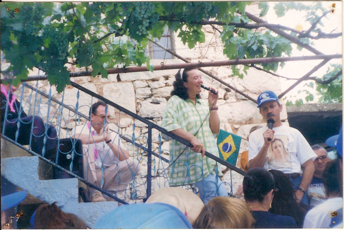| 25/07/1997 Vicka falando aos peregrinos do Servos da Rainha em sua casa | |