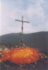 Cruz do Krizevac em chamas com raios de luz chegando e saindo